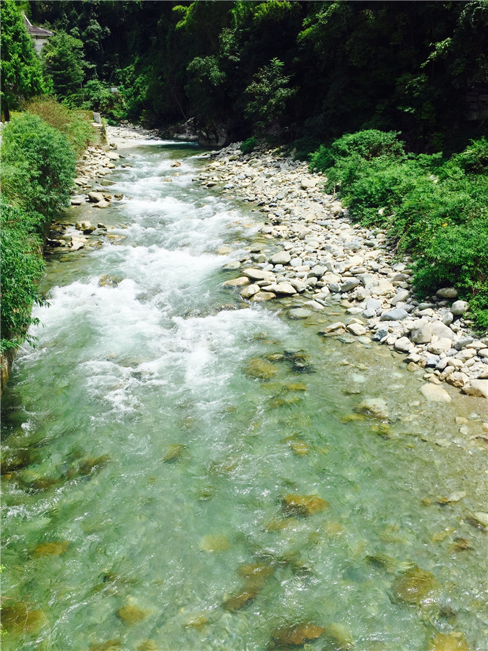 ▼黑湾河山门前澄碧透彻的溪流