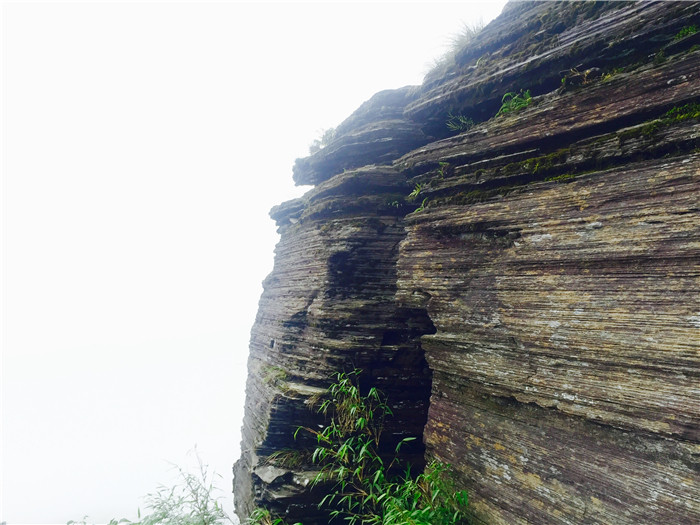 梵净山山势雄浑,从黑湾河山门进入核心景区的路很长,路陡弯急,景区巴士单程要开15分钟,坐得我这个老司机都七荤八素了。到了隧道下站,再坐15分钟索道才能到上站。索道真的很长,国内估计也就天门山索道比梵净山更长了。到了隧道上站,你还得再往上爬一个小时的森林栈道才能到达蘑菇石---梵净山真正有游览价值的部分其实正是从这里才开始的。老金顶和红云金顶都属于典型的页岩沉积地貌,山形奇特颇为壮阔,这与张家界武陵源的石英砂岩峰林地貌在风格上有着迥然的不同。