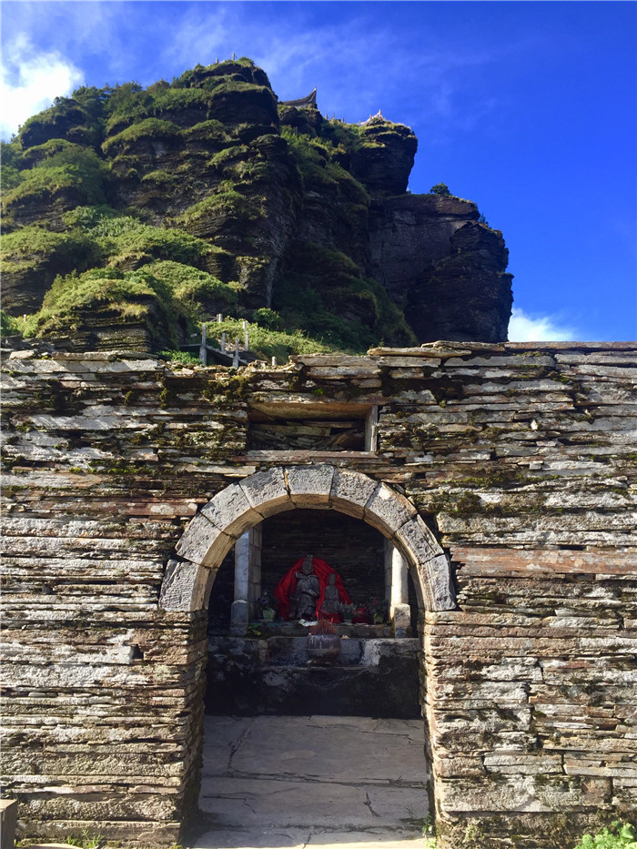 作为与山西五台、浙江普陀、四川峨眉、安徽九华齐名的中国第五大佛教名山,梵净山是弥勒佛的道场,但目力所及,山上的佛教遗存其实不多。老金顶上的燃灯殿和果然寺遗址、红云金顶上的弥勒殿和释迦殿,规模都极小,小到只有一间小庙,即便是复建的皇庵承恩寺,规模也不大。所谓大小寺庙数百座、四大皇庵四十八脚庵,盖因历次苗民起义及太平天国余孽作祟,尽数毁于战火,殊为可惜。也不知是不是我来的时候不凑巧,也没见到什么香火,这和普陀、九华形成了鲜明的对比。如今的梵净山,更多的是作为一座动植物宝库而遗世独存。