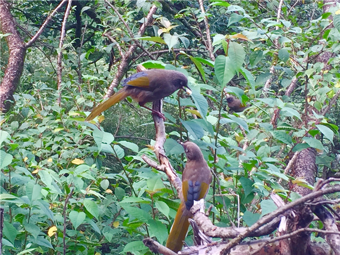 ▼远眺•由左及右分别是棉絮岭(往印江县护国寺山门方向)、拜佛台、老金顶(海拔2494米)