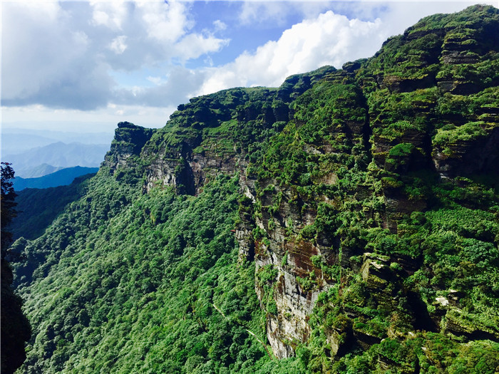 作为横亘在川、鄂、湘、黔四省交界的武陵山脉正源(还真不是张家界的武陵源),梵净山真正的主峰其实是红云金顶身后那座巍峨雄浑的山峰---凤凰山(海拔2572米)。凤凰山不仅是武陵山脉最高峰,也是贵州省的最高峰。凤凰山早年间尚有采药人走的山路,保护区成立以后就彻底人迹罕至对外封闭了,山路慢慢也荒了,现在是绝对的原始森林。据去过的科考队员告诉我,2013年他们最后还去过一次,往返走了八天七夜……我滴个亲娘哦,那我还是远眺一下吧。至于老金顶,不过是游人可以到达的最高峰而已。