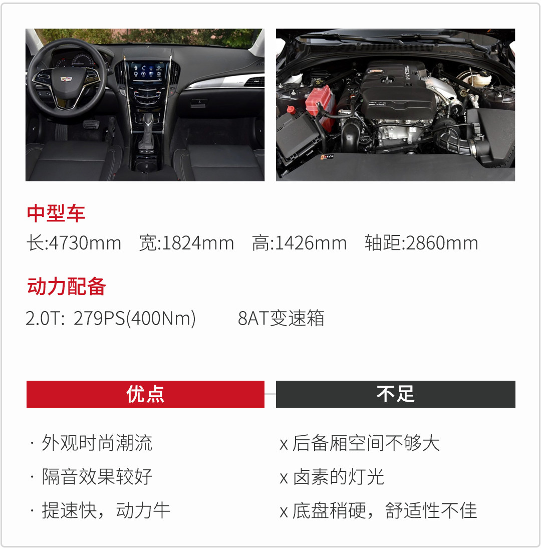 在动力上面,ATS-L搭载2.0T+8AT变速箱的动力组合,换挡比较平顺,而且动力输出较快,最大功率可达205KW,峰值扭矩可达400牛.米。另外因为ATS-L的动力输出呈线性状,所以反应速度会比较快,在正常行驶时变速箱会积极进行升挡。值得一提的是在车速还未达到100KM/h就可以上到最高挡,最高挡的作用体现了出来。不过在激烈驾驶时,换挡缺乏手起刀落的爽快感,多少有点拖拉。