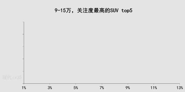 在9-15万这个价格区间里,还可以细分为9-12万与12-15万。在9-12万区间内,国产SUV还是占着绝对的优势;而12-15万区间内,越来越多价格比较优惠的合资小型/紧凑型SUV涌入,例如现代的ix35、本田XR-V这等价格不高,产品力不差的车型都是这个区间里消费者比较关注的产品;在这一个细分范围内,国产SUV受到了一定的压力。