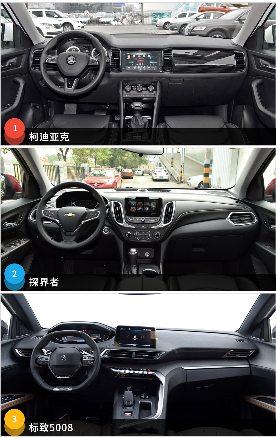 设计最个性还是标致5008,整体的布局看起来比较简洁,但仪表盘、换挡杆等地方比较别出心裁,而且本身用料也不差。