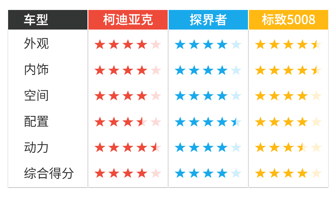 标致5008、柯迪亚克和探界者这三款车型的起步价都在20万以内,但三款车各有各的特点和优势。标致5008设计有个性,柯迪亚克整体性价比高,探界者价格很吸引人!