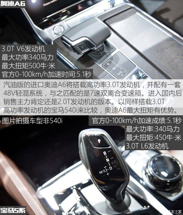 两台车在风格上有着明显的不同,从视觉效果和给人留下的印象来看,奥迪A6更有优势,尤其是中控部分,科技感很强,和上一代车型相比有了翻天覆地的变化。而宝马5系的豪华感营造的不错,就是设计思路和老款车型类似,没有太惊喜的地方。从舒适度角度来说,标准轴距的A6后排座椅舒适度不如宝马5系,希望这点在未来加长国产后能得到改进。