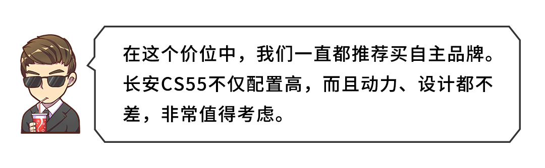 而自主品牌的优势就在此,由于不需要太多的资金为品牌效应买单,同一个级别中,自主品牌车型的配置与空间都可以往更高的层次发展,而在十万元SUV的级别里,长安CS55可以说是一款很出色的产品;首先在机械层面,长安品牌的研发团队向来可以交出一份比较满意的答卷,扎实厚重的行驶品质很具有欧式范儿,非常能讨好中国消费者。