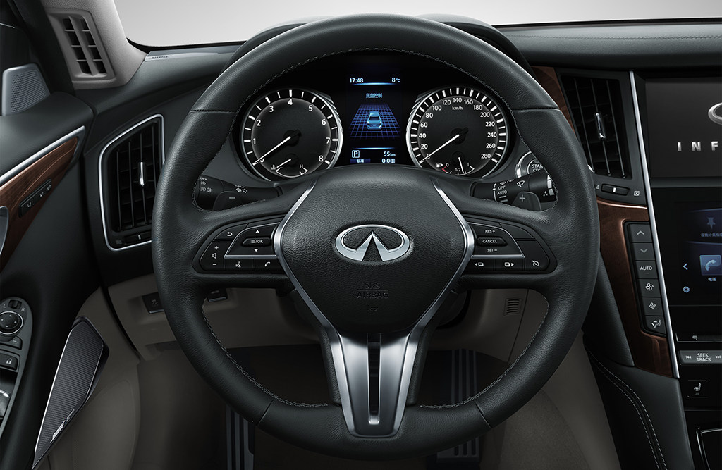 此外,多处采用的双缝线工艺装饰,则于细节处彰显新Q50L的匠心品质,与细腻的真皮搭配,让消费者在观感和触感上获得双重享受。