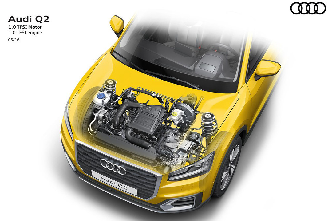 动力方面,海外搭载的是全新的1.0T发动机以及1.4T、2.0T发动机,匹配的是6MT或者是7速双离合变速箱,2.0T车型配备了Quattro四驱系统。得益于MQB的轻量化设计,1.0T手动挡车型整备质量不过是1205kg。作为参考,同是小型车的奥迪A1整备质量为1220kg。而2.0T车型在此轻量化设计下,虽然“只有”190马力,但也让奥迪Q2能够实现6.8s的百公里加速时间了。