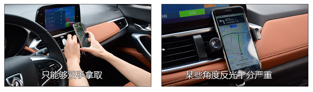 缺点:出风口冷热风容易影响手机工作,无法单手取放
