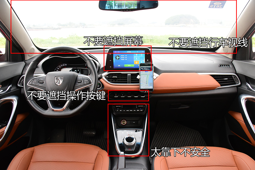 1、尽量摆放在接近视平线的位置,但不要遮挡了行车视野