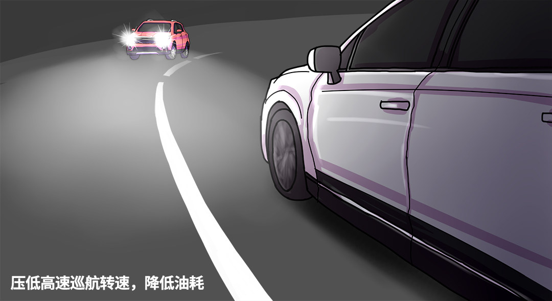 多挡位带来最直接的好处当属提升变速箱变速范围,能更轻松地实现提升低挡位的扭矩输出以及压低高速巡航转速,在动力性能与燃油经济性间找到韧性平衡。