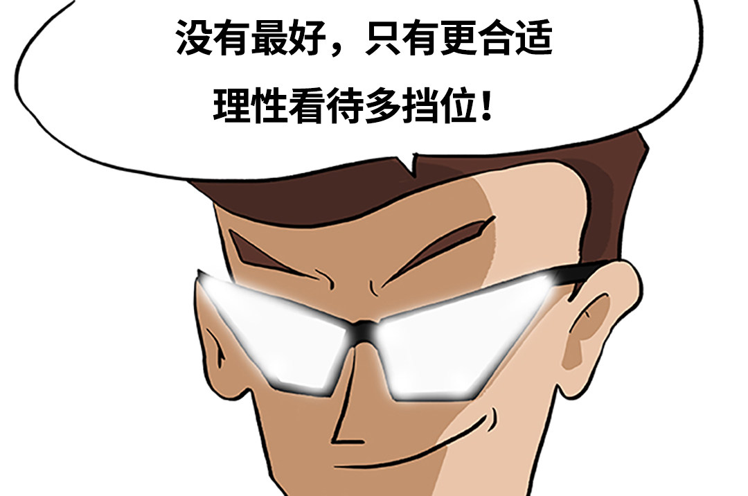 盲目追求多挡位无异于郑人买履,我们花钱买的是试用体验,而非账面数据上的优胜,何必依赖数据,拘泥于教条心理?没有最好,只有更合适。
