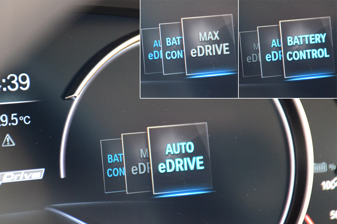 这套eDrive混动系统具有三种不同模式,分别是AUTO eDrive、MAX eDrive、BATTERY CONTROL,分别是自动模式、纯电模式、充电模式。