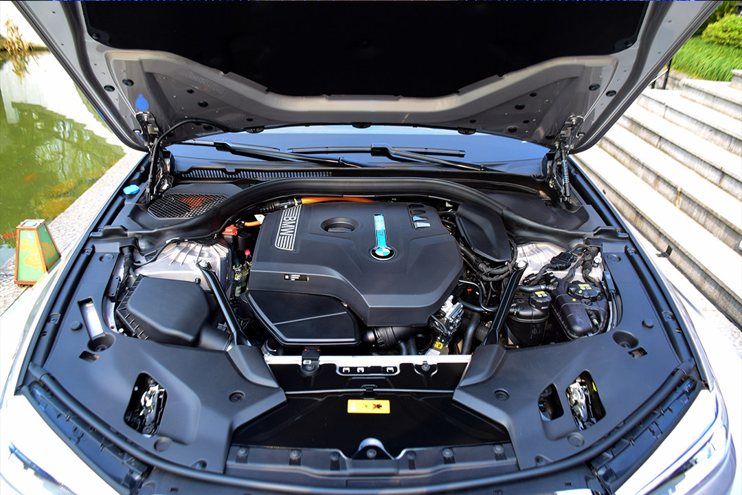 采用宝马第三代混动系统,搭载的电机最大功率70kW,250N·m扭矩,动力电子模块与变速箱集成在一起,电池容量14kWh,比起上一代更加轻量化,能量密度更高,65Wh/kg,据说是能量密度最高的插电混动动力电池包。