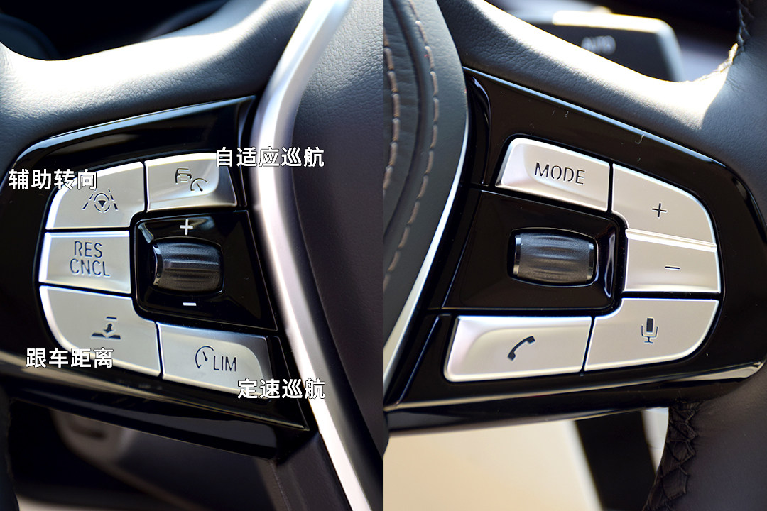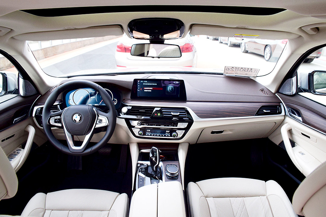 车内的配置非常高,基本装备了5系所有的选装项,科技配置方面,试驾车配备了辅助刹车系统、自适应巡航可配合辅助转向系统使用,最大转向角度为30度、手势控制、语音操控等