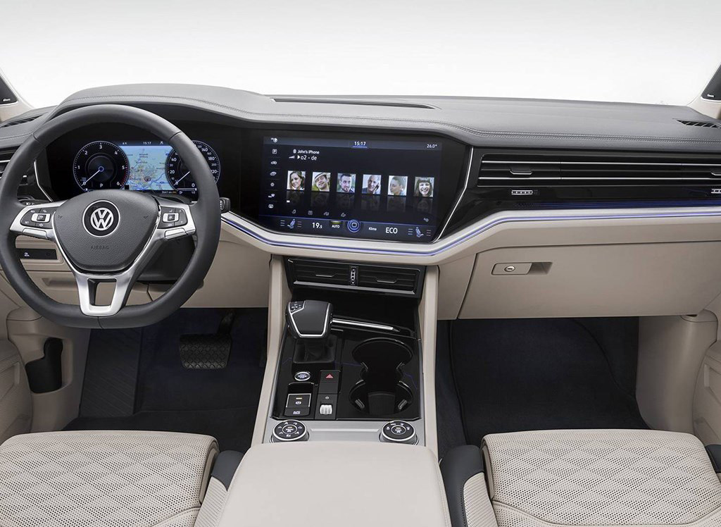 途锐最大的看点,也是最吸引人的地方莫过于全新的内外设计了,外观的设计整体大致保持了上一代车型的比例,但是车灯、腰线等细节变得更加刚劲有力,科技感也更加足了,而在内饰上全新途锐则堪称翻天覆地,车内使用了15英寸中控大屏+12英寸全液晶仪表这样堪称变态的配置,使得整个内饰变得非常整洁而具有科技感。
