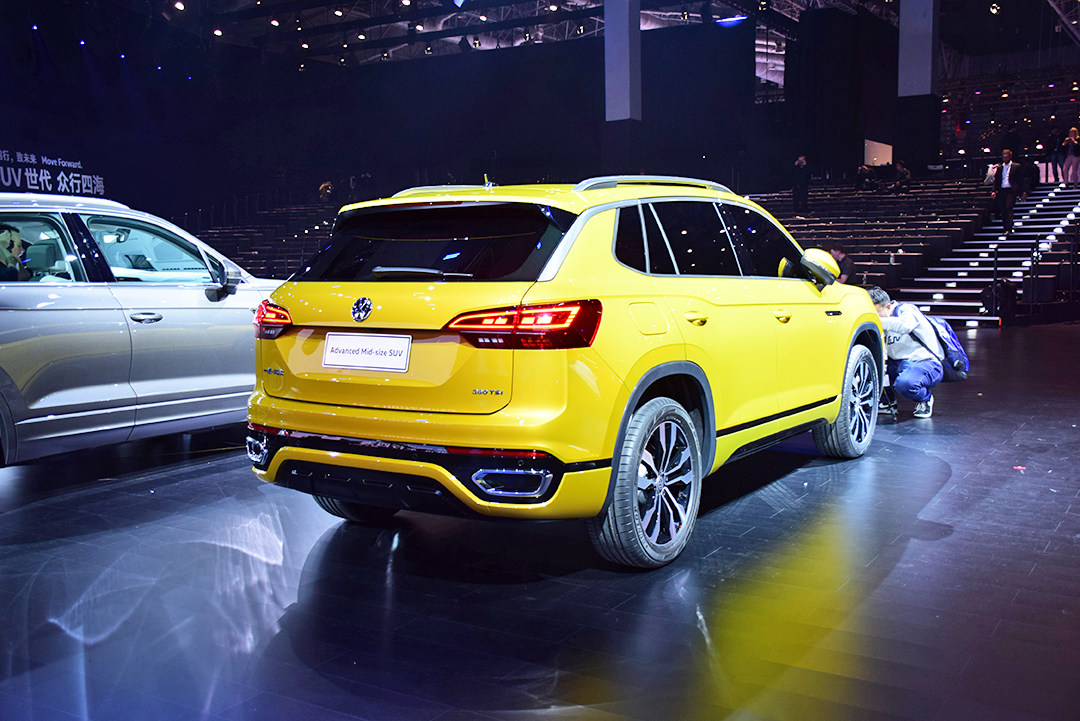 Advanced Mid-size SUV的尺寸与途观L接近,但是在设计风格上差异明显,Advanced Mid-size SUV的车身线条更加细腻,弧线和棱线的运用恰到好处,尾灯也更加接近于全新途锐和奥迪的风格。
