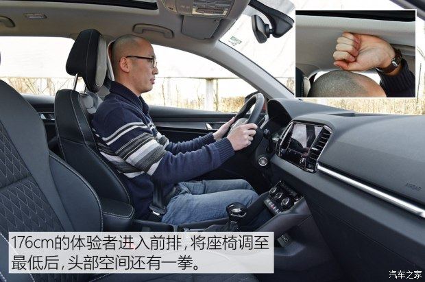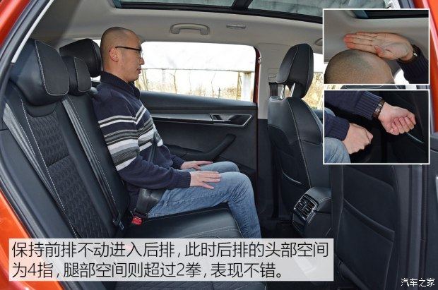 乘坐空间方面,身高176cm的体验者进入前排并将座椅调至最低位置,可获得一拳的头部空间;保持前排座椅不动来到后排,此时体验者的头部空间为四指,腿部空间超过两拳,轴距加长功不可没。