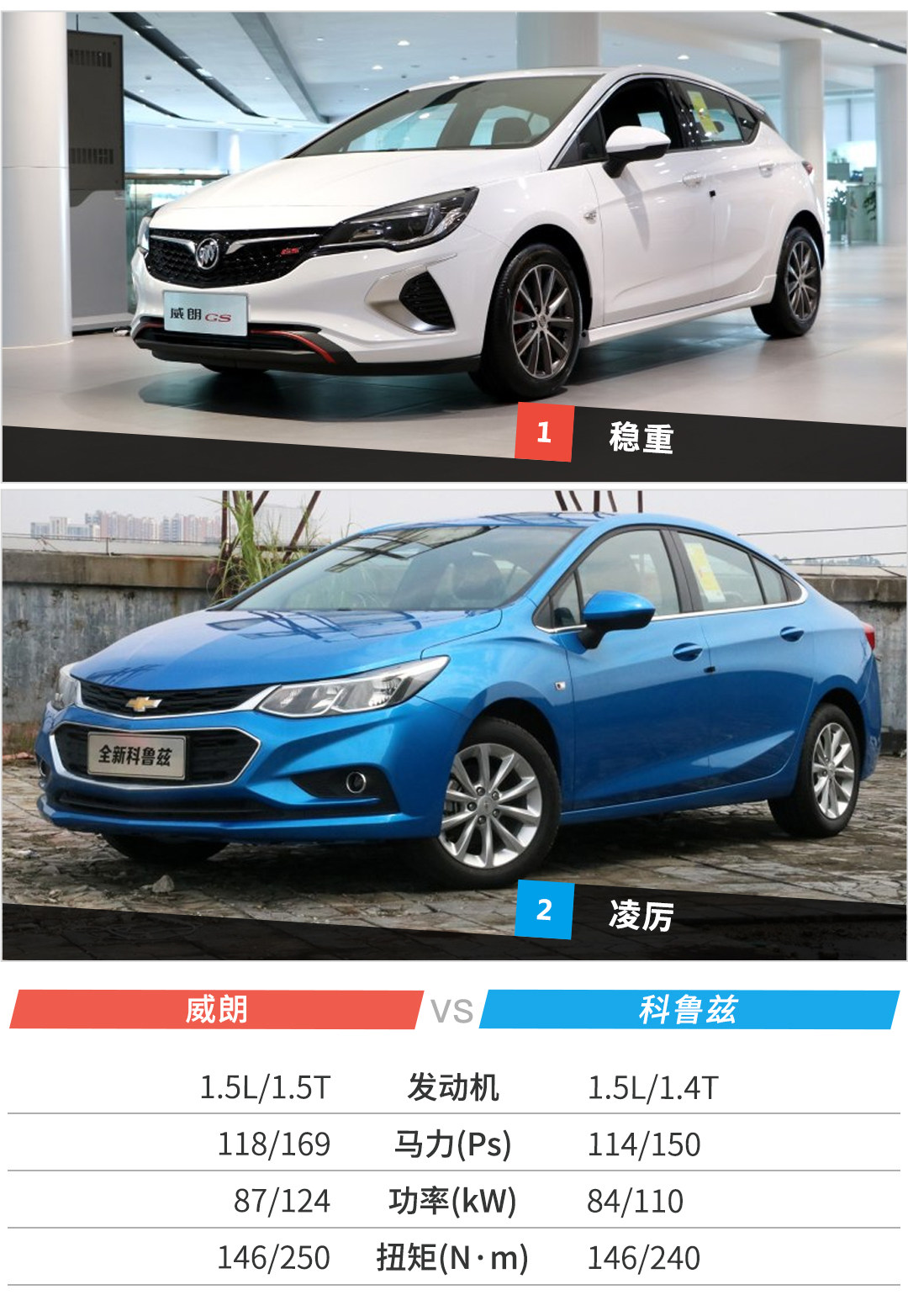 在动力的表现上,威朗搭载1.5T和1.5L的发动机,最大可输出169PS的马力,最大的扭矩是250牛.米,1.5T排量在百公里加速上的表现很不错,耗时8.8秒。科鲁兹搭载1.4T和1.5L的引擎,在同等排量的情况下,科鲁兹的表现比威朗要逊色一点。百公里加速最快时间是9.9秒,耗油5.7升。