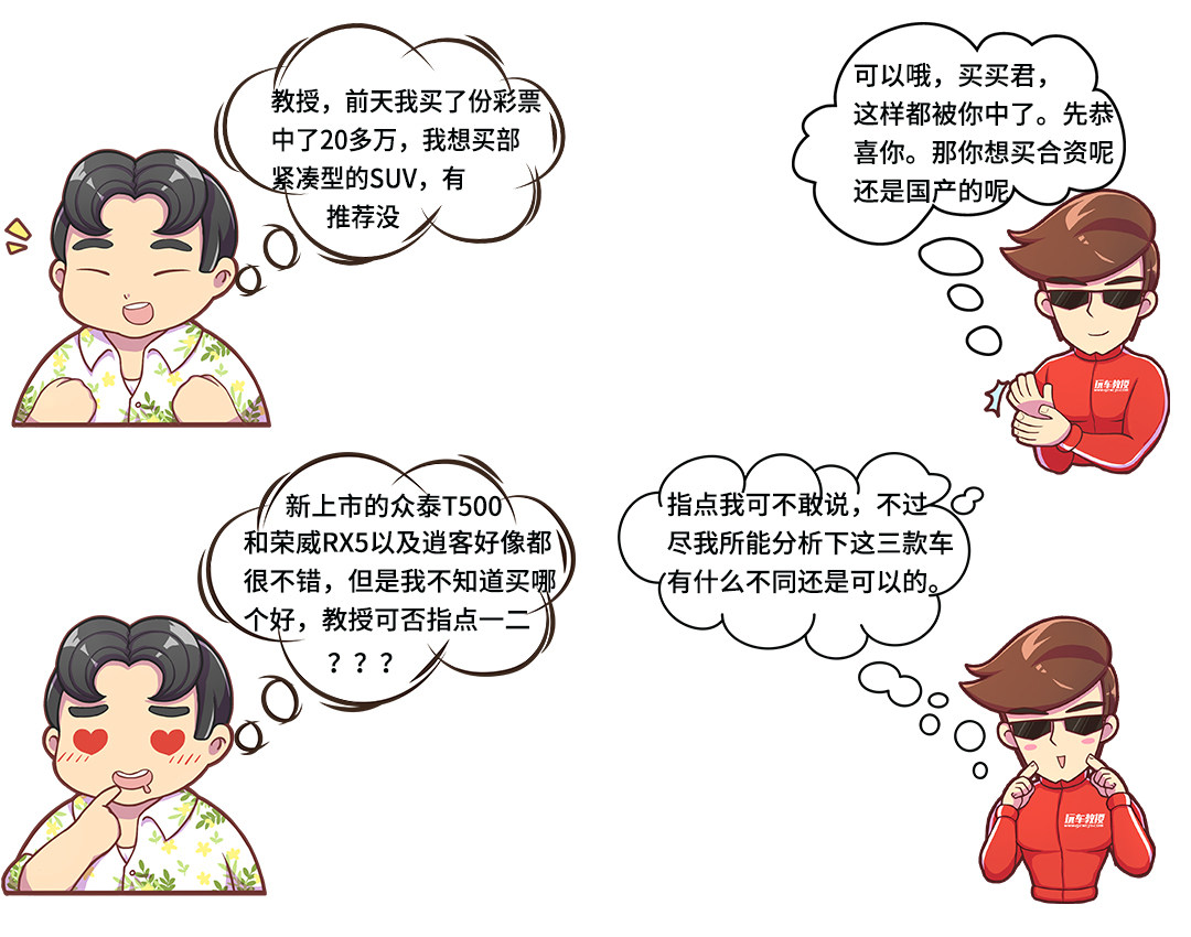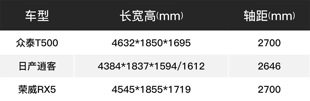 接下来,请跟着小编的脚步进入今天的主题点,对众泰T500、日产逍客和荣威RX5三车进行简单的对比分析