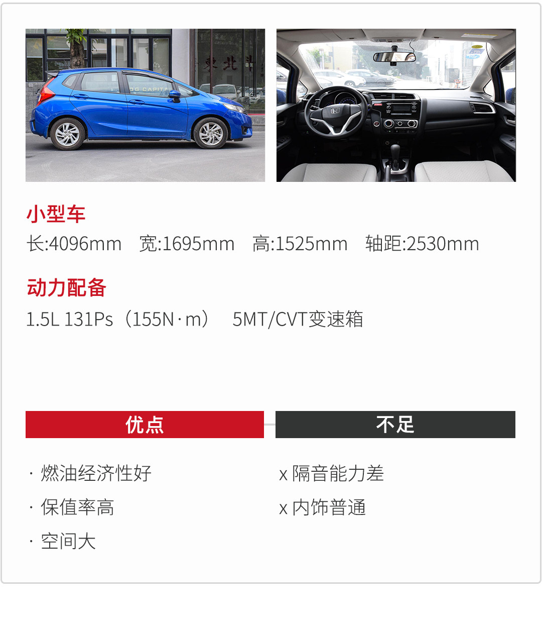 每个热血青年都有一个超跑的梦,本田飞度带你实现。今年还新推出潮跑版,外形上增添许多运动的装饰。飞度车长4096mm 宽1695mm 高1525mm 轴距2530mm。作为小型车市场动力的代表,飞度的1.5L地球梦发动机简直可以供上神坛了,1.5L自然吸气发动机爆发出131Ps,最大扭矩155N·m,推动轻巧的车身,超高的推重比,没愧对平民超跑的头衔。