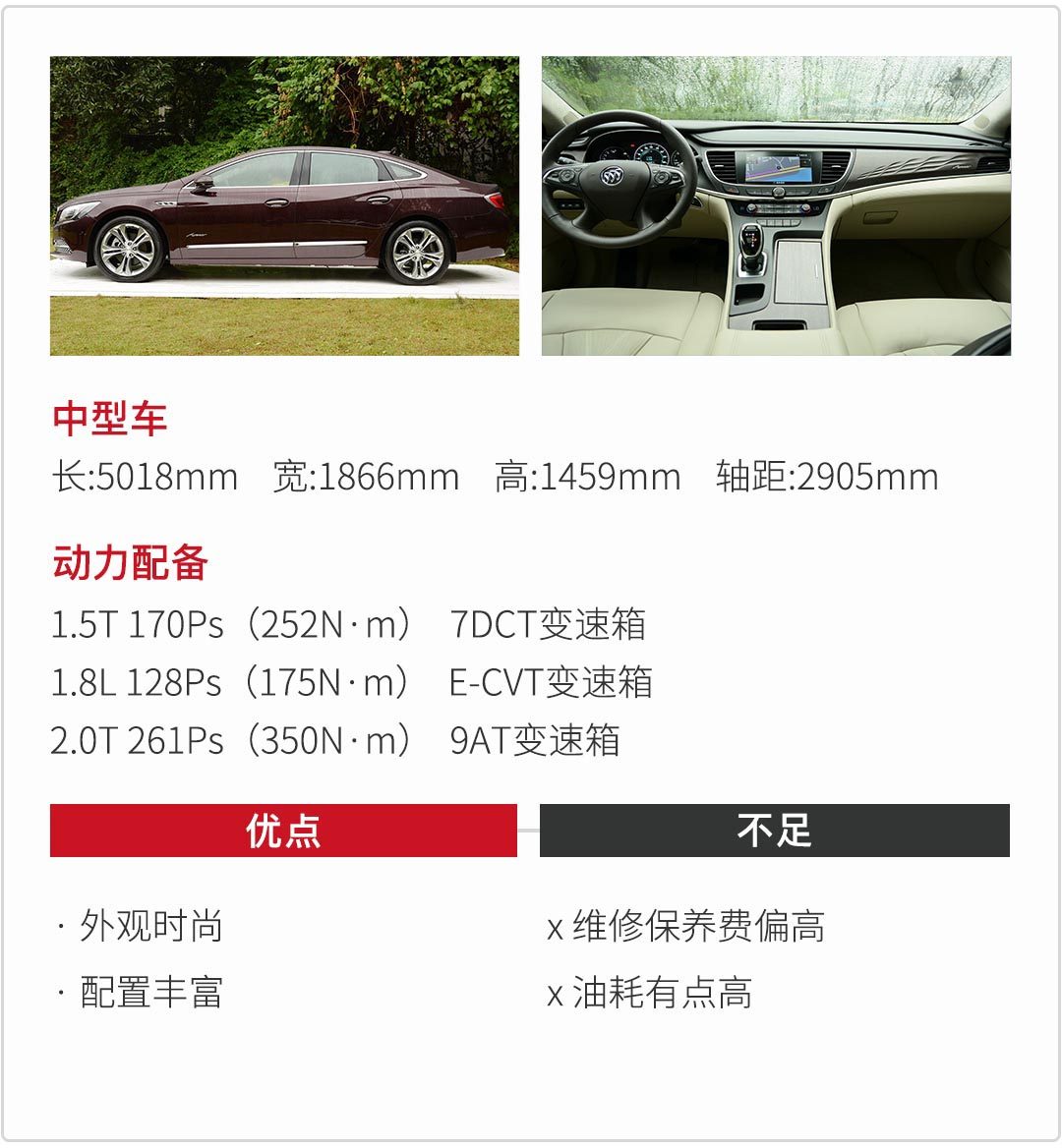 新一代君越采用扁平宽厚的车头,从侧面看去车身更显修长,看着比较有气势。车长5018mm 宽1866mm 高1459mm 轴距2905mm,这厚重的车身立马给人稳重的视觉效果。君越有三套动力总成,1.5T涡轮增压发动机搭配7速双离合变速箱,1.8L自然吸气发动机搭配E-CVT变速箱,2.0T涡轮增压发动机搭配9AT变速箱。君越有可变悬架,底盘方面更显高级。