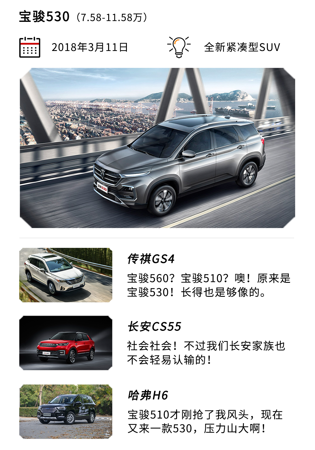 宝骏530:大家好,我是新人宝骏530。上一年宝骏510成为了最大的黑马,那今年最大的赢家绝对是我!谢谢~