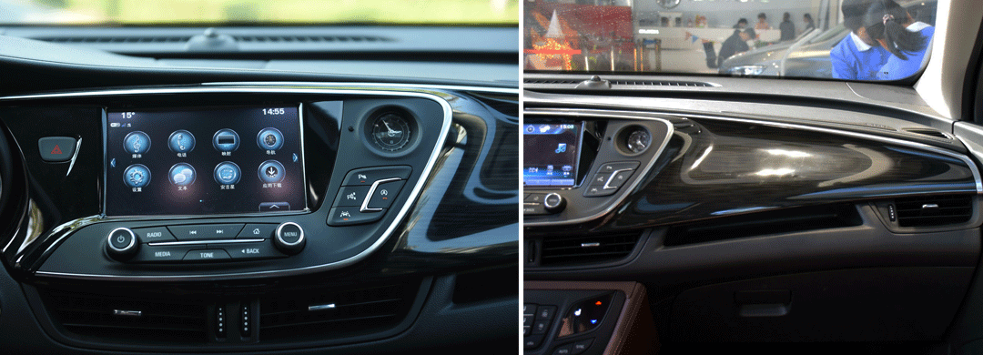 进入到昂科威的车内,你会发现它的内饰氛围有着越级表现!双色内饰设计配合大量木质纹理贴片装饰富有质感,中控台布局错落有致,保持着一定的中庸气质,石英钟成为了很好的细节点缀!整体营造出舒适的视觉感受,触摸质感也突出!