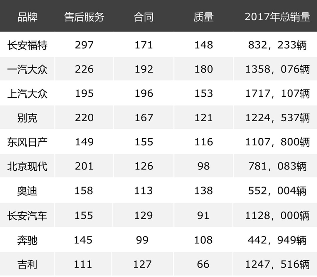 (PS:本次数据来源中国消费者协会 2017年统计)