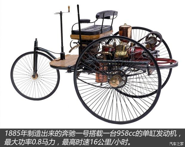 1885年,机械工程师卡尔·本茨和他的合作伙伴利用自行车零件和自己研发的四冲程发动机制造出了奔驰一号三轮汽车。1886年1月29日,这台车在德国专利局获得了认证,奔驰一号正式被认定是人类历史上的第一台汽车,它标志着人类的交通工具从人力和畜力时代正式进入了机动时代。