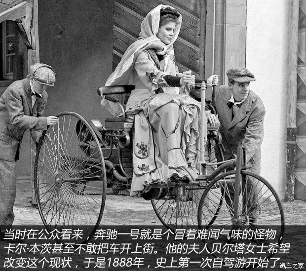 车是发明出来了,但当时的人们受封建思想约束,并不认可这个飘着刺鼻味道的怪物。当地政府也不允许卡尔·本茨试车,因为他们觉得一旦试制成功就会浪费很多汽油,还会破坏公路。然而卡尔·本茨的夫人——贝尔塔·本茨可不这么想。1888年的一个清晨,本茨太太背着本茨先生,带着两个儿子驾驶这台奔驰一号汽车踏上了回娘家的路。