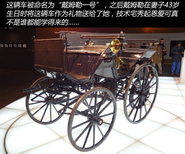 戴姆勒一号通过皮带进行传动,最高行驶速度可达16公里/小时。四轮的车身形态对之后上百年的汽车制造都起到了指导作用。后来,戴姆勒将这台车作为43岁生日礼物送给了自己的妻子。