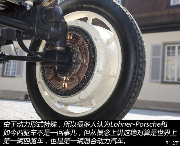 因为Lohner-Porsche搭载了一套油+电的特殊动力结构,而且动力源也不像普通汽车一样在发动机舱里,而是分布在四个车轮上,所以通常人们不把它当做是如今四驱车的鼻祖。然而不可否认,它确实是世界上第一辆四轮驱动汽车。而且还有部分观点认为Lohner-Porsche应该算是世界上的第一台混合动力汽车。