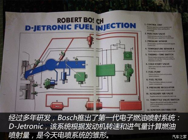 经过很多年的继续研发和完善,博世推出了一套名为“D-Jetronic”的电子燃油喷射系统,这套系统才是今天电喷系统的雏形。经过若干次试验之后,1967年,D-Jetronic被安装在大众Type 3 1600TL/E车型上进行量产。D-Jetronic会根据发动机转速和进气量来计算燃油喷射量,无论在燃油经济性还是动力方面都较化油器车有了很大提升,因此如今才会全面替代化油器车型。