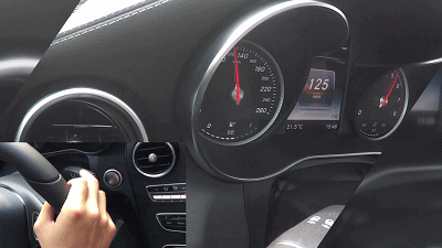 然后,教授进行第三次测试,按电子手刹。同样地加速到120km/h,开定速巡航,当教授按下电子手刹的那一刻,定速巡航解除,并且车辆会有不错的制动力让车子减速,但需要注意的是,这种制动力并没有重踩脚刹的制动力强,还有一点就是如果你遇到紧急的情况需要用电子手刹来刹车,你需要按住电子手刹(仅针对于奔驰C200L运动版)。