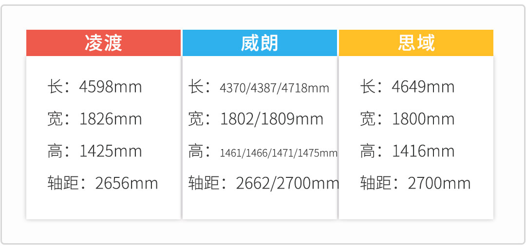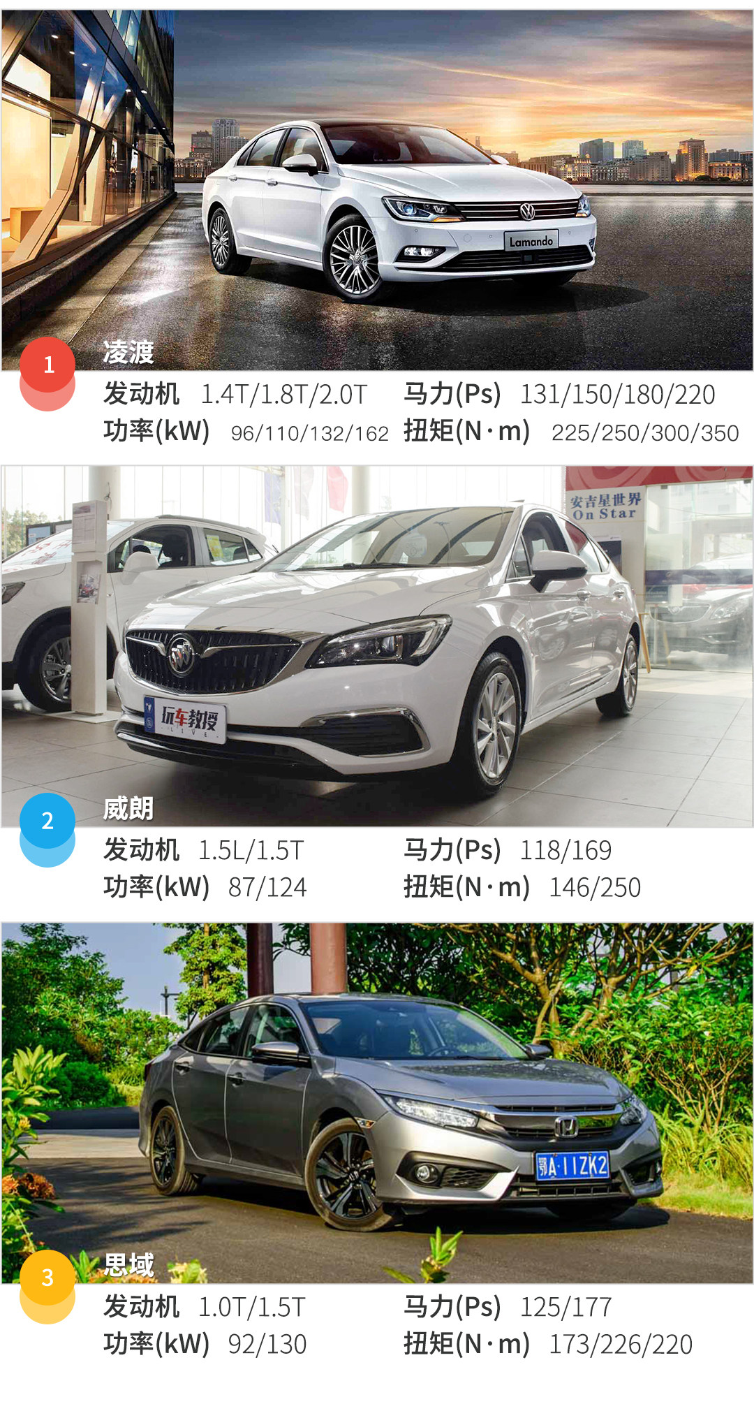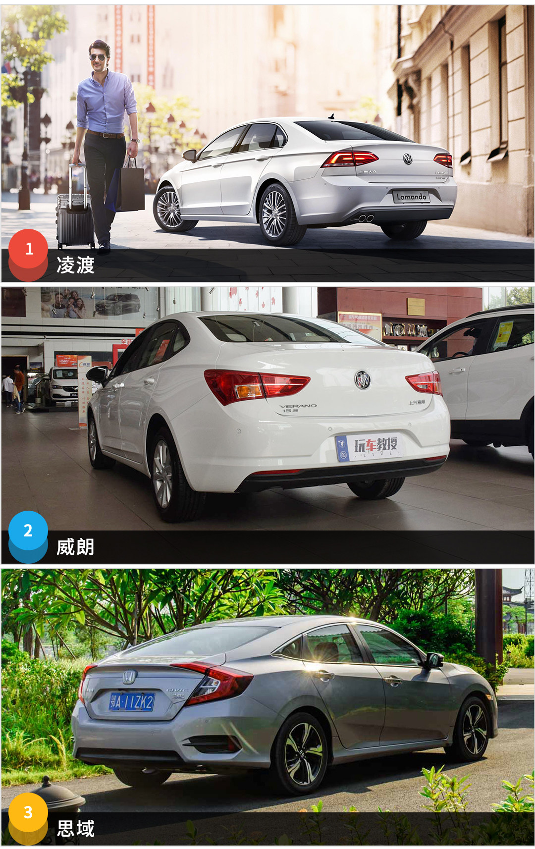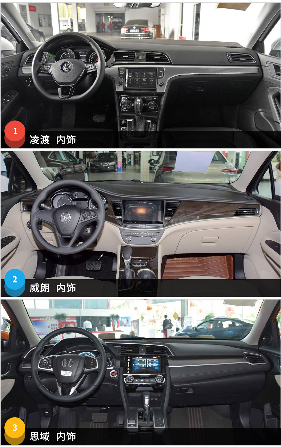 威朗有两厢版和三厢版车型可选,会比较多选择,凌渡符合它的广告语,比其余两款车型要稍宽一些;思域在高度比对手更小,所以看起来“跑味”会更浓一些。