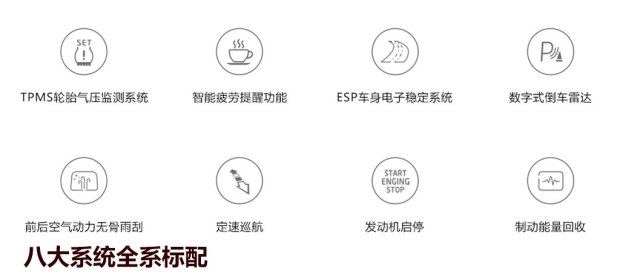 在配置方面,新车在电子安全配置方面做得比较齐全,ESP、胎压监测、倒车雷达等都是全系标配,同时定速巡航、启停和制动能回收系统也都是标准配置,体现出厂家对科技配置有较高的重视程度,也使得新车的安全和便利性得到保证。