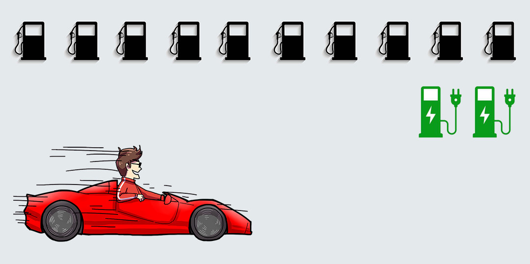 知道加油站有多少个吗?2015年底,国内汽车加油站约9.6万个,如果今年只按10万个算,也就是说,你经过10个加油站,撑死才能找到2个充电站。