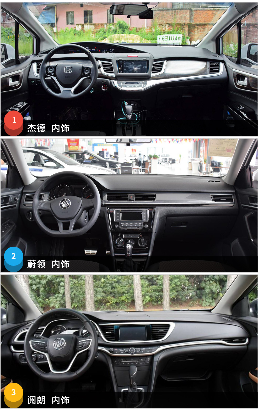 杰德除了老款的1.8L自然吸气发动机以外,还增加了一款1.5T车型,也是2017款杰德的主销车型,最大马力156Ps,最大扭矩203N*m,与之配合的是CVT变速箱。D挡模式下,起步的时候油门响应缓慢,速度提上来以后感觉还好,厂家宣称减震器阻尼相比老款要小,所以舒适性会更好一些。蔚领全系使用1.5L和1.4T两款发动机,配合5MT,6AT或7速双离合变速箱。最大马力110Ps/132Ps,最大扭矩150N*m/225N*m,双离合变速箱在刚起步的时候离合结合会稍慢。阅朗全系使用3缸发动机,排量有所区别,1.0T发动机最大马力125Ps,最大扭矩170N*m,1.3T发动机最大马力163Ps,最大扭矩230N*m,除了最低配车型以外其余都匹配6AT变速箱或6DCT变速箱,在怠速的时候可能3缸发动机抖动明显,但是开起来以后与四缸机无异,动力输出平顺,并且马力更大,会比蔚领更加好,不过变速箱的表现则不尽人意。