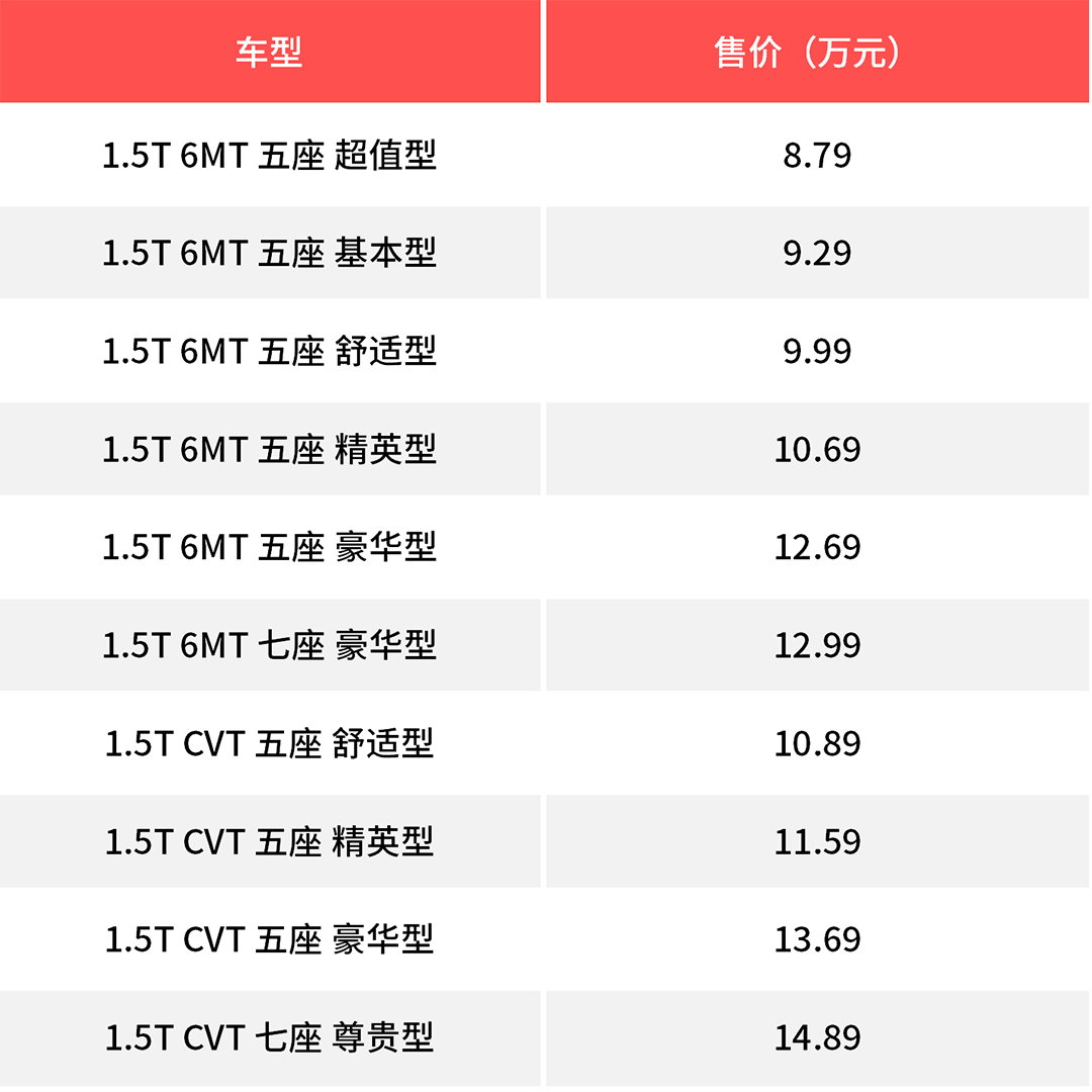 昌河Q7全系都搭载一款1.5T发动机,最大马力达到150匹,最大扭矩达到210牛·米。从数据上看,动力是能满足日常行车需求的。而传动系统搭配的是6MT与CVT两款变速箱。具体的行驶表现同样需要等待后续的评测。