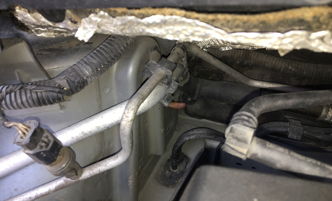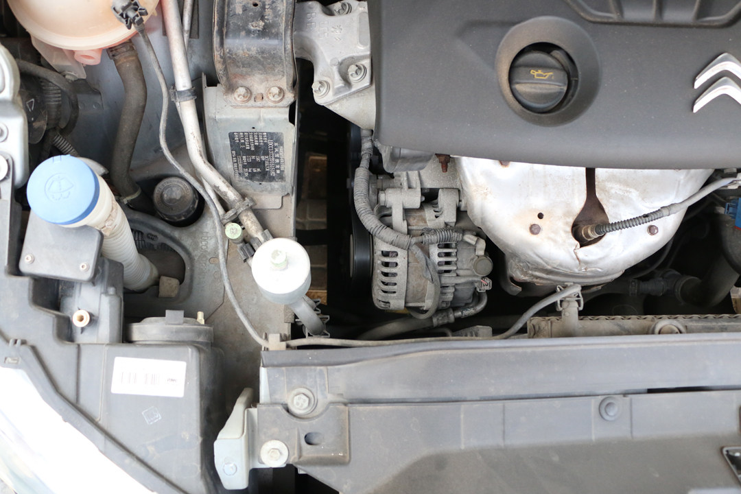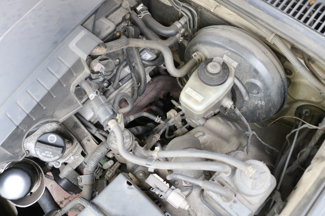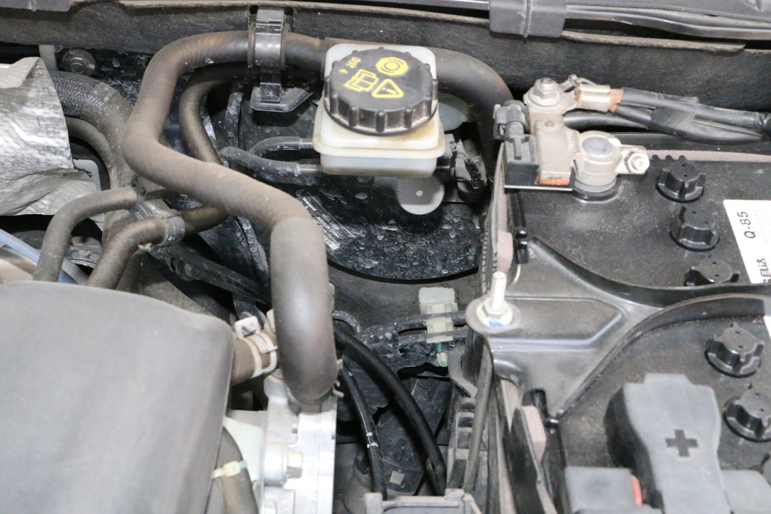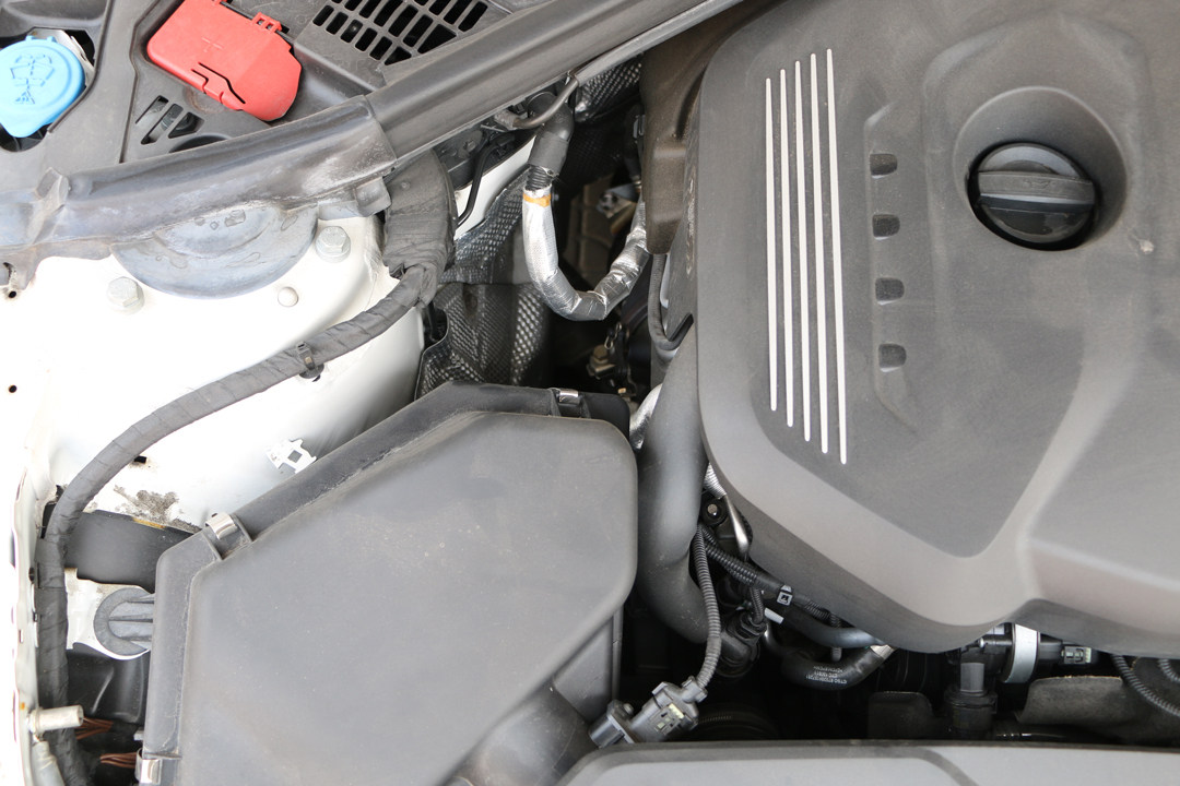 可以看到发动机舱内部非常干净,不过也可以看到这根管道有很厚的积尘,推测是日常行驶通风累积的;另外发动机后方有轻微泥渍。