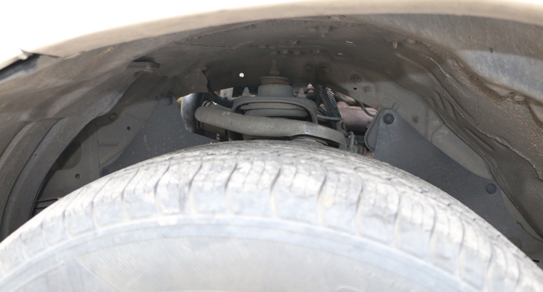发动机视角,右轮拱,可以看到非常干净,并且密封性做得很好,另外前悬挂,伸手摸进去并没有发现什么缝隙,轮拱密封性很好。