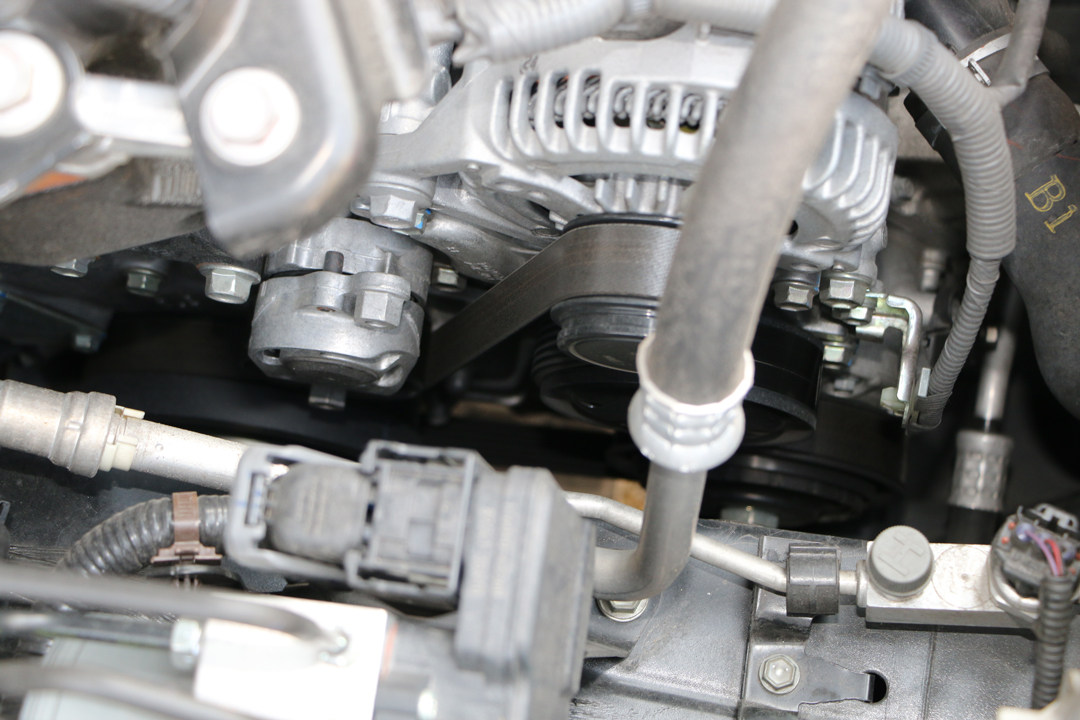 可以看到发动机皮带下面依然能看到地面,这样路过的尘土泥浆有可能飞溅上来,但是发电机皮带和旁边的电机都一尘不染,这个跟论坛上反映的皮带是干净的一致发动机前方也有部分裸露的,但并无什么污渍。