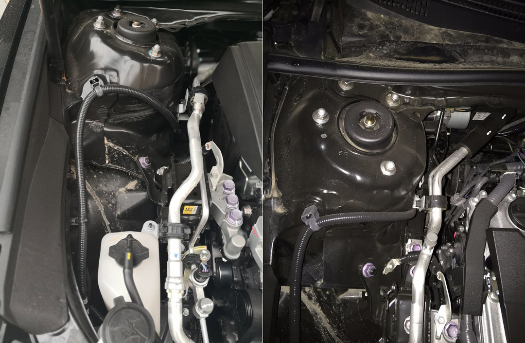 而后三台车是车龄较长或者比较入门的车型,机舱布局不如豪华车那么规整,密封性亦然,所以相对没那么整洁;而针对新凯美瑞塔顶和挡泥板之间的缝隙,应该不如教授拍摄的普拉多那么大,并且机舱内更脏,但普拉多依旧好好的,没有什么大问题。