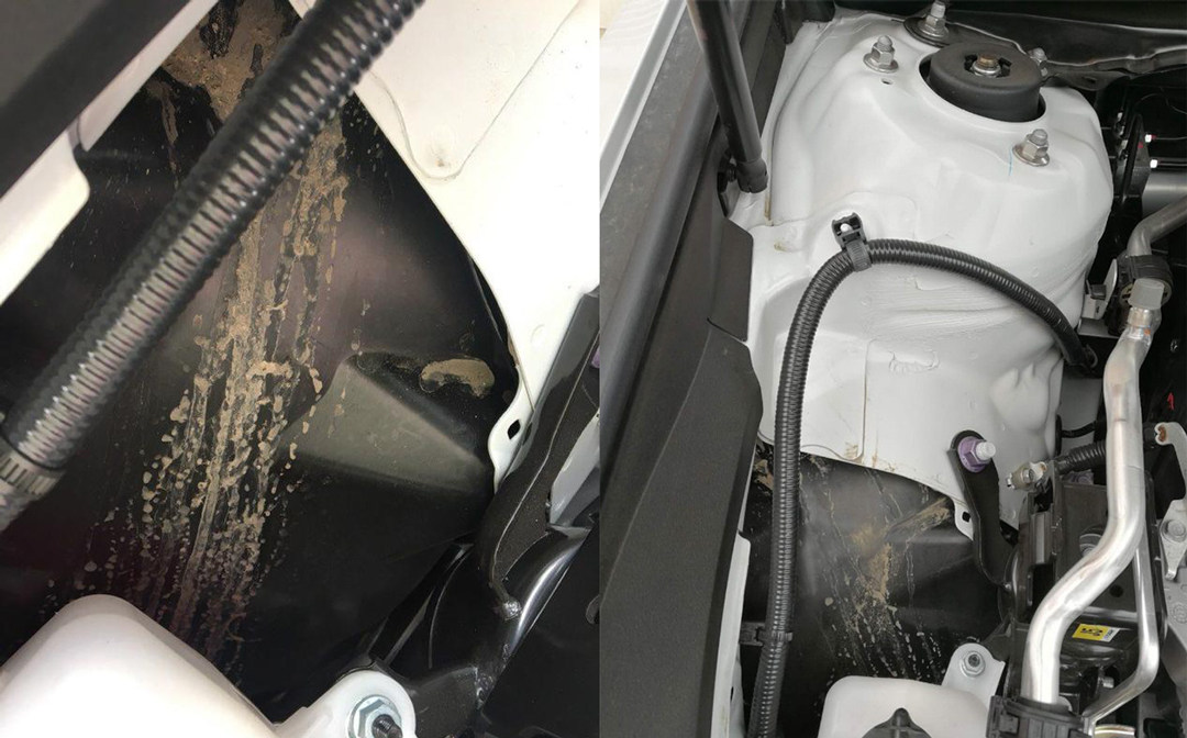 为此,教授借来公司几位同事的车,看看其他车型的发动机舱是个什么情况,看泥浆为什么会进入发动机舱内部,是通过什么途径进入发动机舱的,会有什么影响。