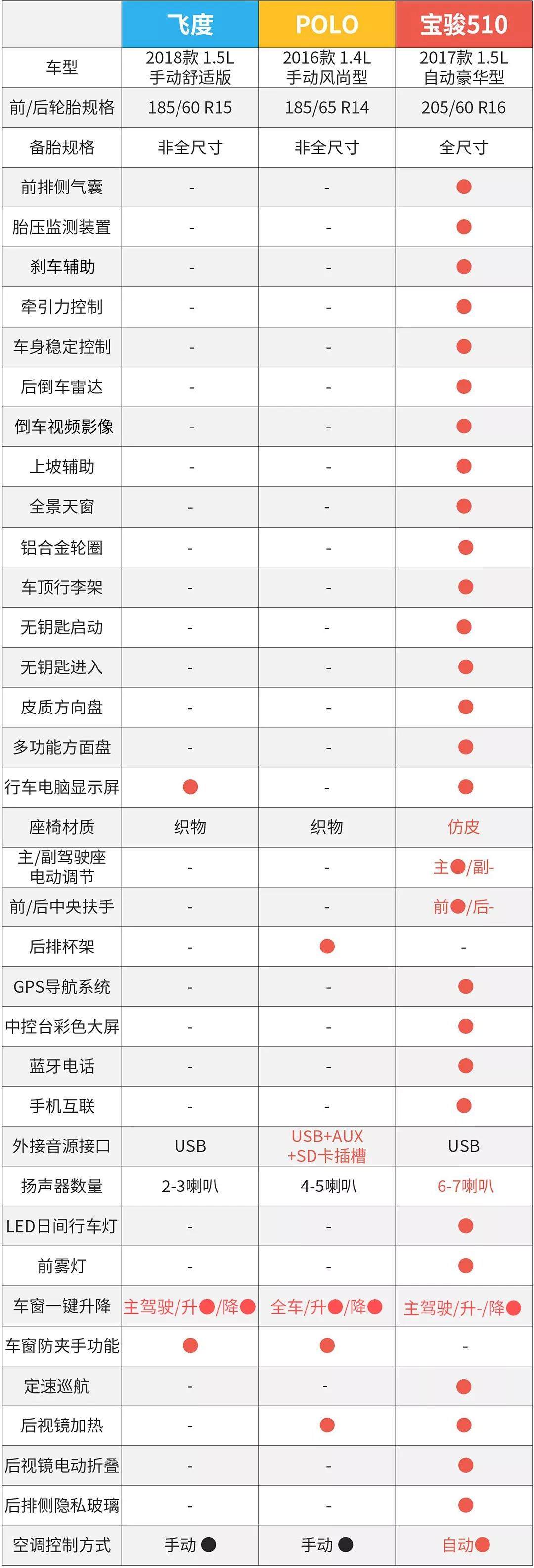 我们通过3款同价位车型的配置差异对比,可以看出宝骏510的配置具有明显的优势,无论是安全配备,比如刹车辅助、车身稳定控制系统(EPS)等,还是许多时下主流的配置,如倒车视频影像、手机互联、全景天窗、LED日间行车灯等,都是实用性很强的配置,而且宝骏510的自动挡车型只需6.88万起,而飞度和Polo在这个价位也只能买到手动挡车型。开着这辆10万不到就能落地的宝骏510出游,心情想不好都难。