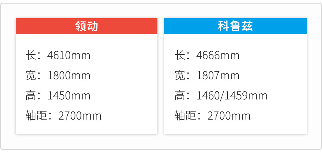 在车身尺寸上科鲁兹要略大于现代领动,但是两者的轴距相同,都是2700mm。因为两者的轴距都比较长,而且后排的地台为纯平设计,所以两者的腿部空间都比较宽敞。
