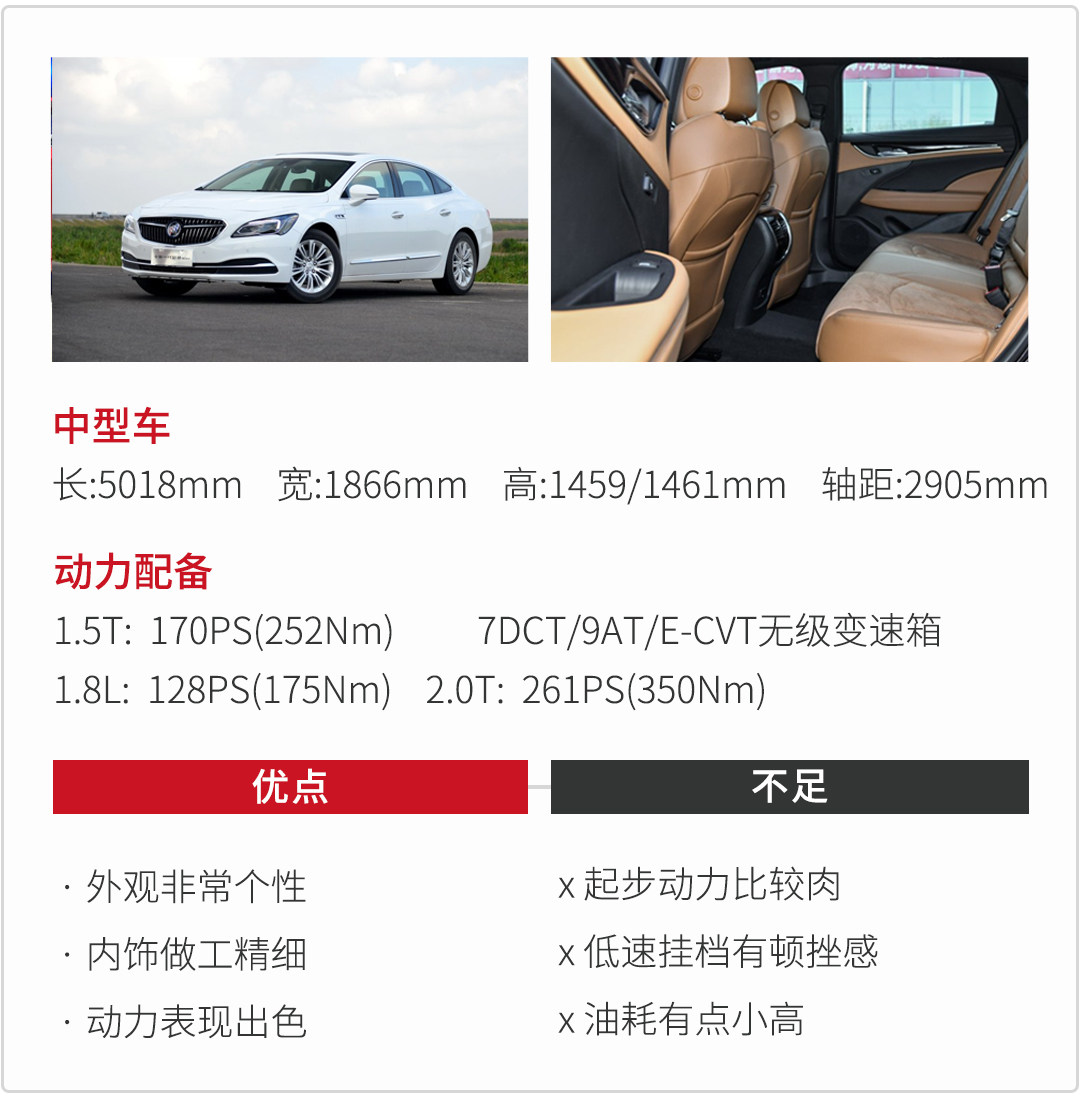 在动力方面别克君越搭载了1.5T、1.8L混动、2.0T三款发动机,而其中最具看点的还是那套1.8L+E-CVT的动力组合,其在换挡平顺性、动力传递和油耗方面有着比较大的优势,可输出128匹的马力,最大扭矩175牛.米,百公里加速8.9秒,比1.5T的还要缩短1.1秒,油耗为4.7升。至于悬架系统,君越搭载CDC全时主动式液力减震系统,能实时作出判断、调整阻尼,确保行驶过程中更佳的舒适性和操控性。
