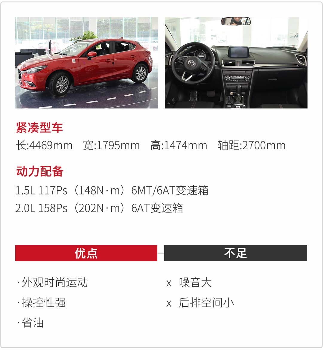 科鲁兹,福克斯,昂克赛拉,都有三厢的版本,但是在不需要的时候,三厢就变为包袱,既不便在紧密的车流中穿梭,又难在狭窄路况倒车。两厢车的后备箱开口半径更大,可以装大件货物,并且车短更加灵活,操控变好,车身姿态也就更完美。